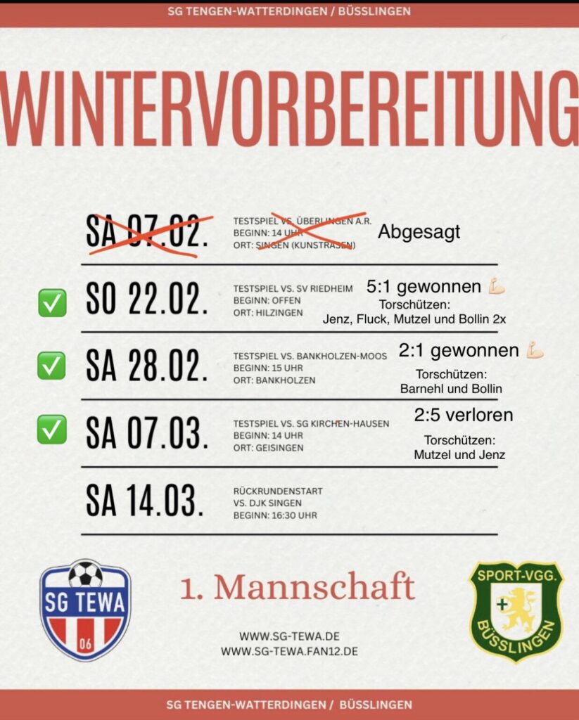 Im ersten Jahr der Spielgemeinschaft mit dem SV Büßlingen wird unsere 2. Mannschaft vorzeitig Meister und steigt somit in die Kreisliga B auf! Glückwunsch!!! (Mai 2024)